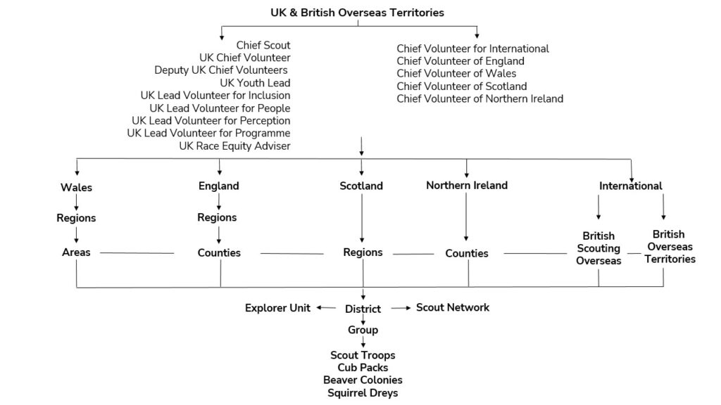 All of these Scout units (Groups, Districts, Counties/Areas/Regions) are governed by the Policy, Organisation and Rules of The Scout Association, which provides the framework in which all Scout units operate.